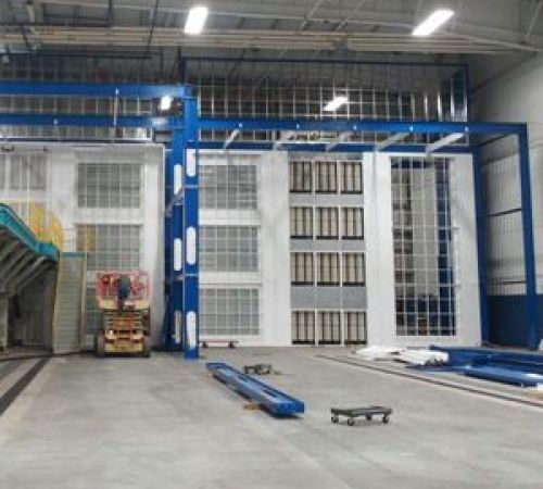 During dry process operations producing dust, these dampers will close and an additional set of low leakage dampers inside the plenum will open to allow the air to flow through the baffled air inlets and then through the cartridge filters. The dampers are automatically controlled to allow only one set to be open at a time, depending on the type of operation being performed.